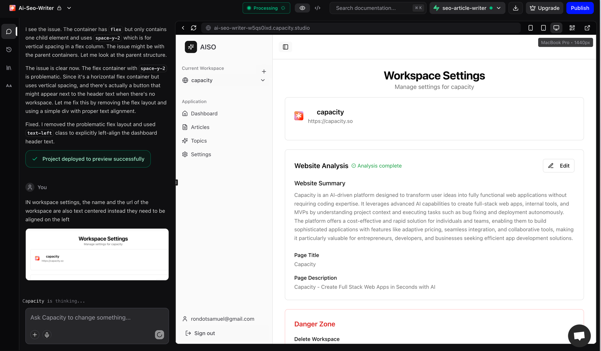 In under 10 hours, I shipped Getwriter.so, an AI SEO article generator, using nothing but Capacity.so.