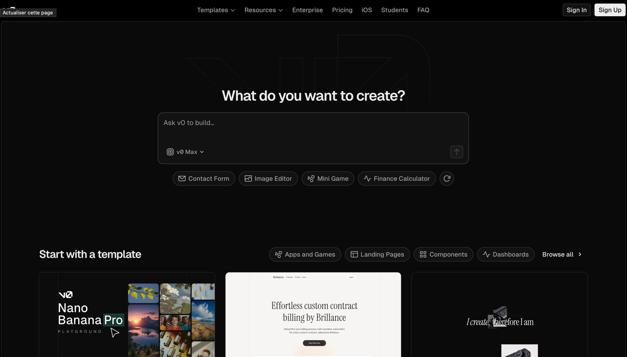 V0 es la herramienta de IA de Vercel para generar componentes UI y páginas completas. Destaca en la creación de componentes React y Next.js con diseños modernos. El plan gratuito es generoso, y los planes premium empiezan en $20/mes.